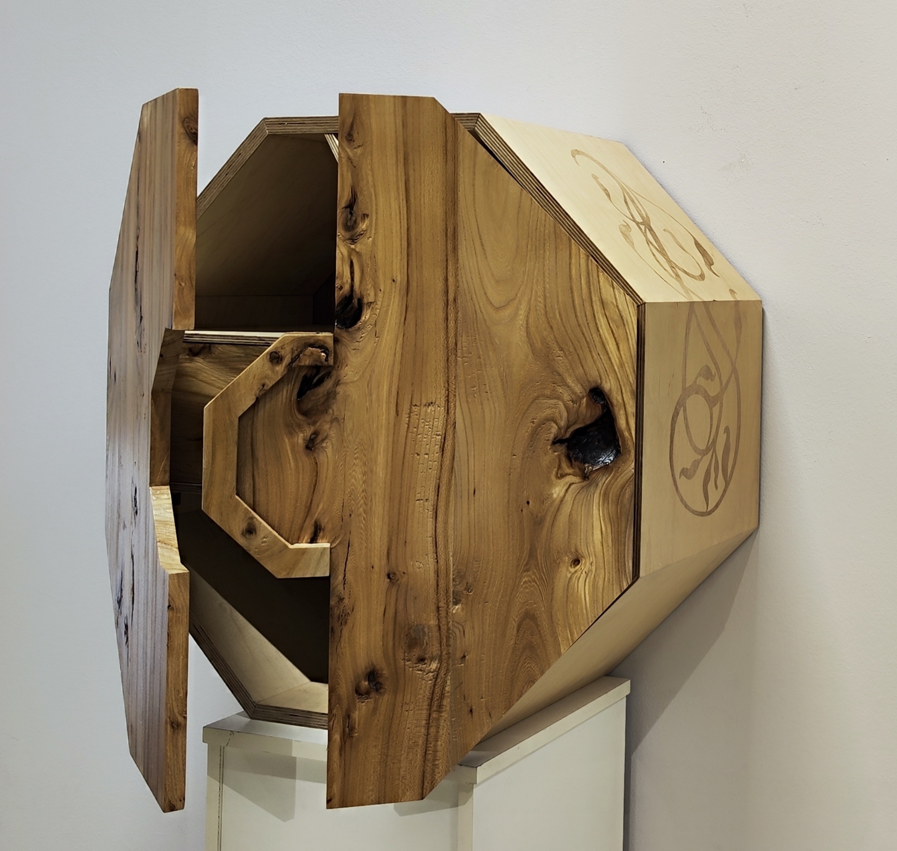 Premio Extraordinario Mariano Timón Obra nº 26: "OCTA" Autora: Leticia Martín de Arriba, antigua alumna de 1º Ciclo GS ebanistería. Técnica: Corte, fresado, gubias y grabado láser. |